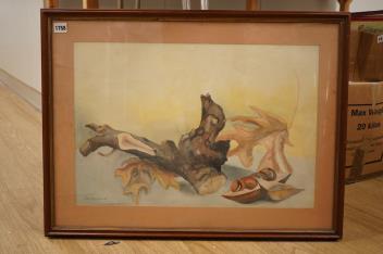 Lot 1758 , Robert Duckworth Greenham (1906-1975), still life of bark and leaves, signed and dated ‘47, 39 x 58cm