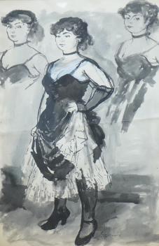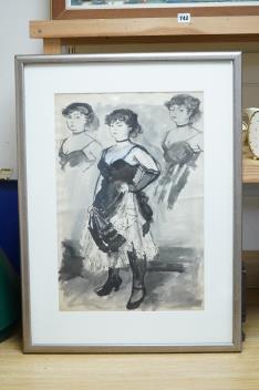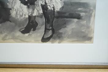 Lot 750 , Roy Spencer (1918-2006), Study of a lady in costume, signed, monochrome ink and wash, 54 x 36cm
