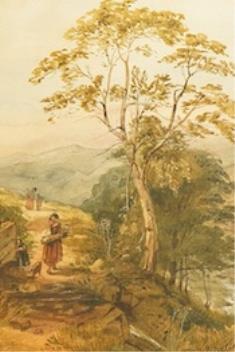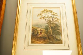 Lot 1700 , S. Dalton, Mountainous landscape with figures, signed, Stewart Whatmore label verso, watercolour, 18.5 x 13cm