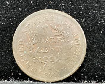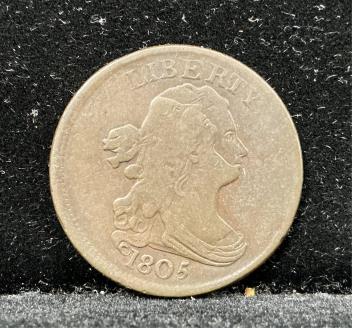 Lot 2048 , SHOULD READ United States of America coins, Half Cent, 1805, draped bust, no stems, bust re-cut or double struck