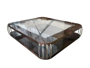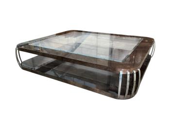 Lot 1074 , Sally Sirkin Lewis for J Robert Scott, a large rectangular Art Deco style lacquer and chrome coffee table, width 220cm, depth 190cm, height 37cm