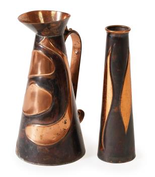 Lot 160 , Sam Fanaroff BEM, 1926-2019, A patinated copper ewer and similar vase