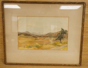 Sam Pope (1896-1940), Expansive landscape view, signed and indistinctly inscribed lower right, watercolour, 16 x 24cm