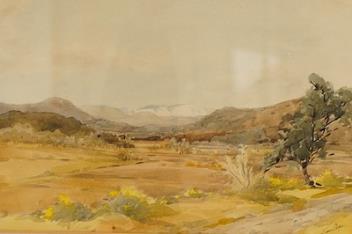 Lot 746 , Sam Pope (1896-1940), Expansive landscape view, signed and indistinctly inscribed lower right, watercolour, 16 x 24cm