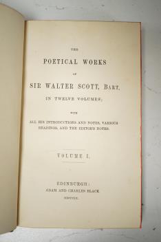 Lot 1258 , Scott, Sir Walter - The Poetical Works ... (new edition). With all his introductions and notes, various readings, and the editor's notes. 12 vols. engraved frontispieces, engraved pictorial and printed titles; sometime r