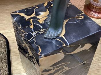 Structurally good; minor scuffs particularly affecting her left arm, left knee and right thigh, none too serious. One top corner of plinth chipped. Most damage now shown in images.