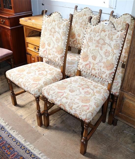 Lot 802 , Set 4 oak framed dining chairs(-)