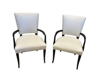 Lot 1112 , Seven contemporary ebonised and grey fabric elbow chairs, five with arms