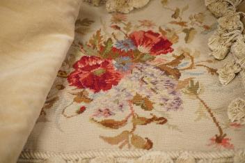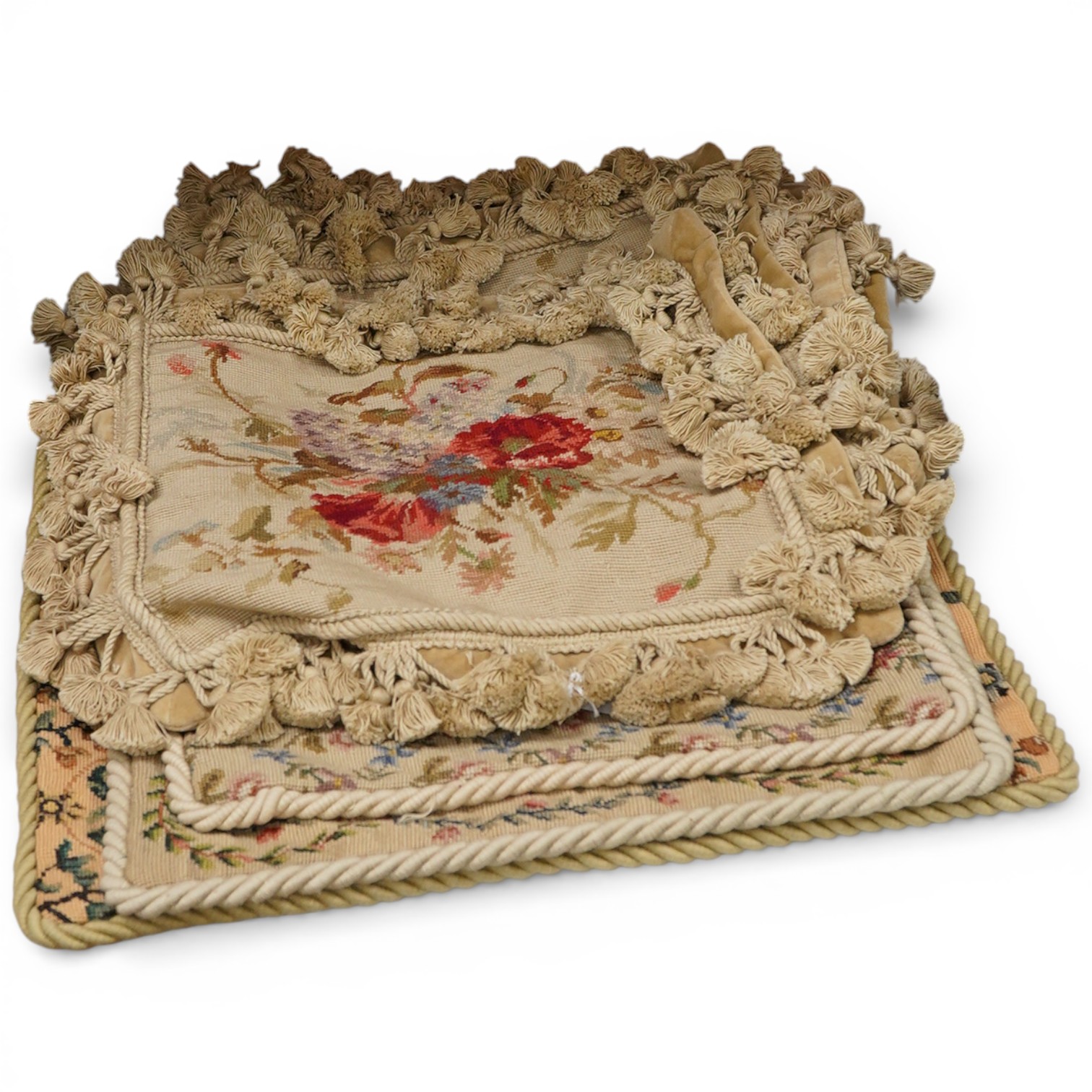 Lot 1489 , Seven petit point assorted floral floral cushion covers, including a set of four smaller and three larger spot motif floral cushion covers with corded edging - largest 43cm x 53cm