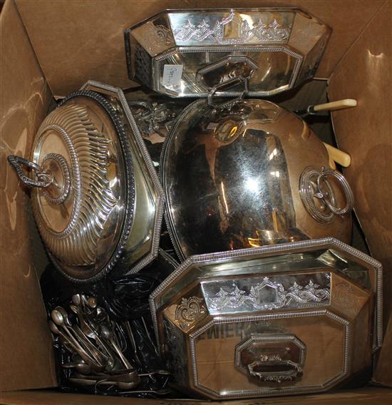 Lot 111 , Silver plated meat domes, entree dishes etc