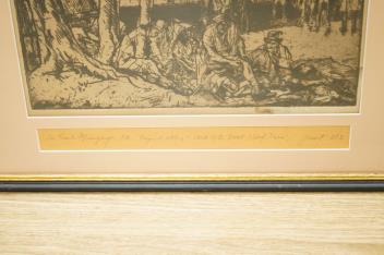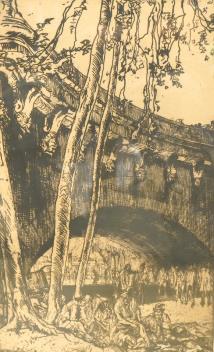 Lot 1744 , Sir Frank Brangwyn RA, RWS, RBA, (1867-1956), 'Arch of the Pont Neuf, Paris', signed in pencil, details and stamp verso, dry point etching, 56 x 34.5cm