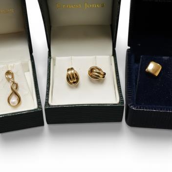 Lot 911 , Six assorted pairs of modern 9ct earrings, including cultured pearl and simulated diamond.