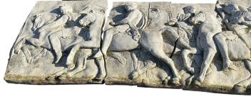 Lot 1030 , Six earthenware classical garden plaques, largest width 120cm, height 50cm