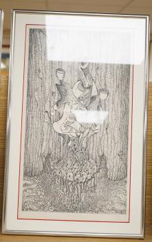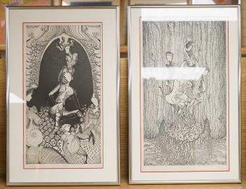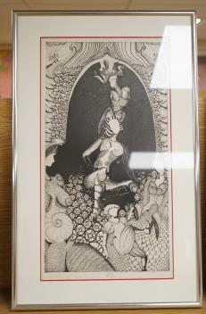 Lot 3278 , Suha Yusuf (Iraqi, b.1950), surreal figural compositions, each signed and dated ‘72 to the margins, one limited edition, one artist proof, pair of etchings, 39 x 21cm