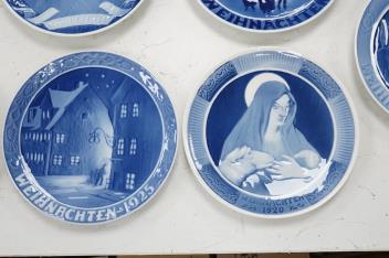 Lot 1326 , Ten Royal Copenhagen blue and white Christmas plates, 1920-1928, 18cm in diameter