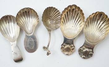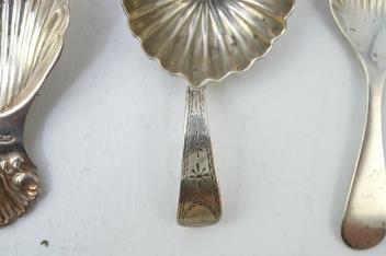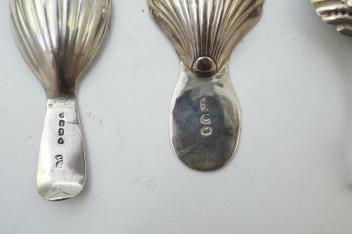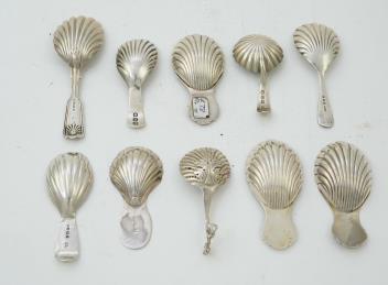 Lot 28 , Ten assorted 19th and 20th century silver caddy spoons, with shell or fluted bowls