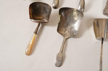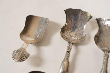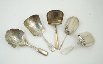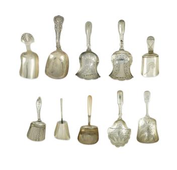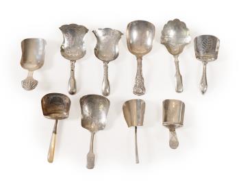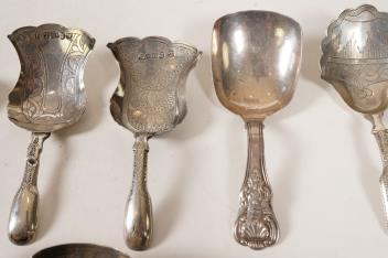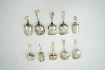Lot 26 , Ten assorted mainly 19th century silver caddy spoons, most with shovel bowls