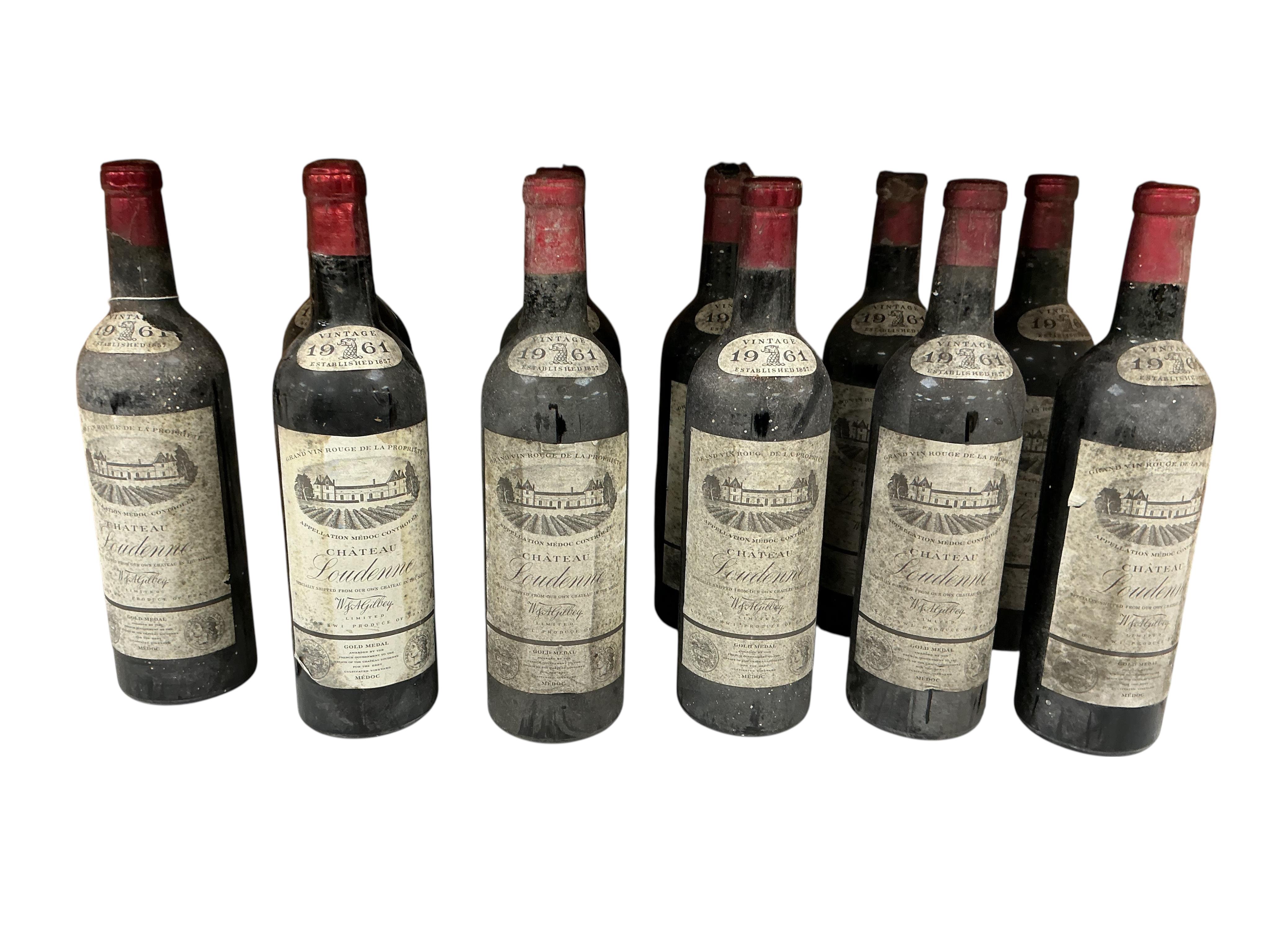 Ten bottles of Chateau Loudenne, 1961.