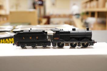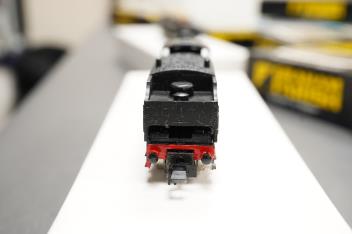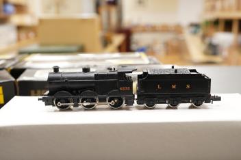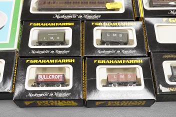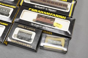 Lot 252 , Thirteen N gauge railway by Graham Farish, etc., including two locomotives; a BR Class 4 0-6-0 tender locomotive, 4232, and an LMS 0-6-0T locomotive, 16389, together with two bogie coaches, eight freight wagons, and a Pe