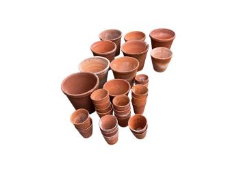 Thirty assorted circular terracotta garden pots, largest height 18cm