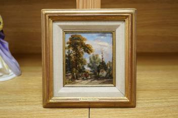 Thomas Churchyard (1798-1865), Street scene other figure and dog, unsigned, indistinctly inscribed in pencil verso, oil on board, 9 x 8cm