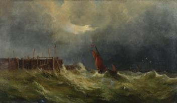Lot 173 , Thomas Rose Miles, British 1844-1916, Rough seas in a harbour