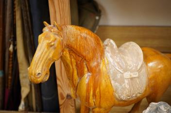 Lot 273 , Three Chinese Tang-style tomb horses, tallest 35cm