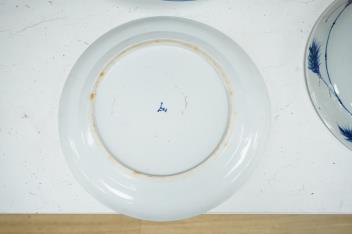 Three Chinese blue and white plates, largest 26cm