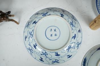 Lot 1501 , Three Chinese blue and white plates, largest 26cm