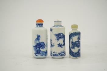 Lot 112 , Three Chinese blue and white snuff bottles, c.1850-1900