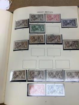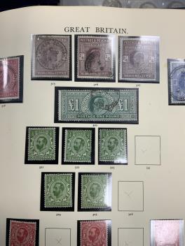 Three Windsor loose leaf stamp albums for the stamps of Great Britain, including a good selection of Victoria to Elizabeth II used and unused issues, three 1840 penny black 1d stamps, two 1840 2d blue stamps, 1841 issue stamps, plated penny red 1d stamps, a Victoria unfranked £1 stamp, two Edward VII £1 stamps, together with other high denomination stamps, a George V Postal Union Congress London 1929 £1 stamp, etc.
