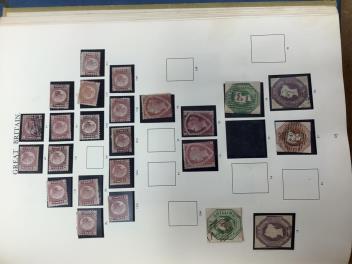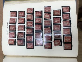 GB album pages 9, 11 and 13 largely full and uncancelled although page 13 Two Pence blues are cancelled. Plate 225 not present. (Images 12, 13 and 14). Page 15, plate 9 not present, image 15. Pages 17 to 29 a little more than half-full, images 16 to 22. Page 47 see image 23, 24 and 25; eight on this page uncancelled. Page 3 Penny Black, third from left shown in image 26.