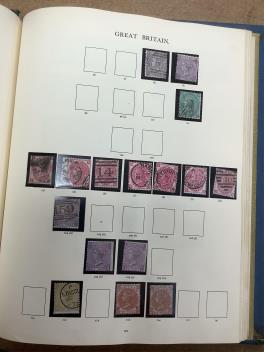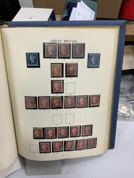 Lot 2137 , Three Windsor loose leaf stamp albums for the stamps of Great Britain, including a good selection of Victoria to Elizabeth II used and unused issues, three 1840 penny black 1d stamps, two 1840 2d blue stamps, 1841 issue