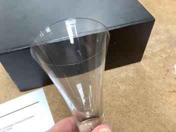Tallest with a minor blister and scratch, image 4; a small air tear to the plain stem and folded foot, image 5. Middle size good, also folded foot. Smallest with three small chips around footrim. Likely to be mid-18th century.