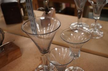 Lot 1356 , Three late 18th century trumpet glasses, all with plain stems containing tears, tallest 21cm