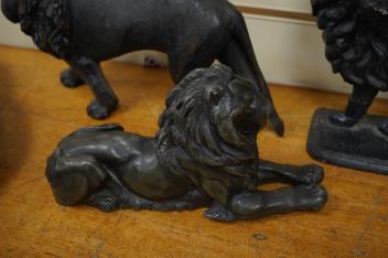 Lot 2512 , Three lion models, varying materials, and a carved wax ‘Bacchus’ wall plaque