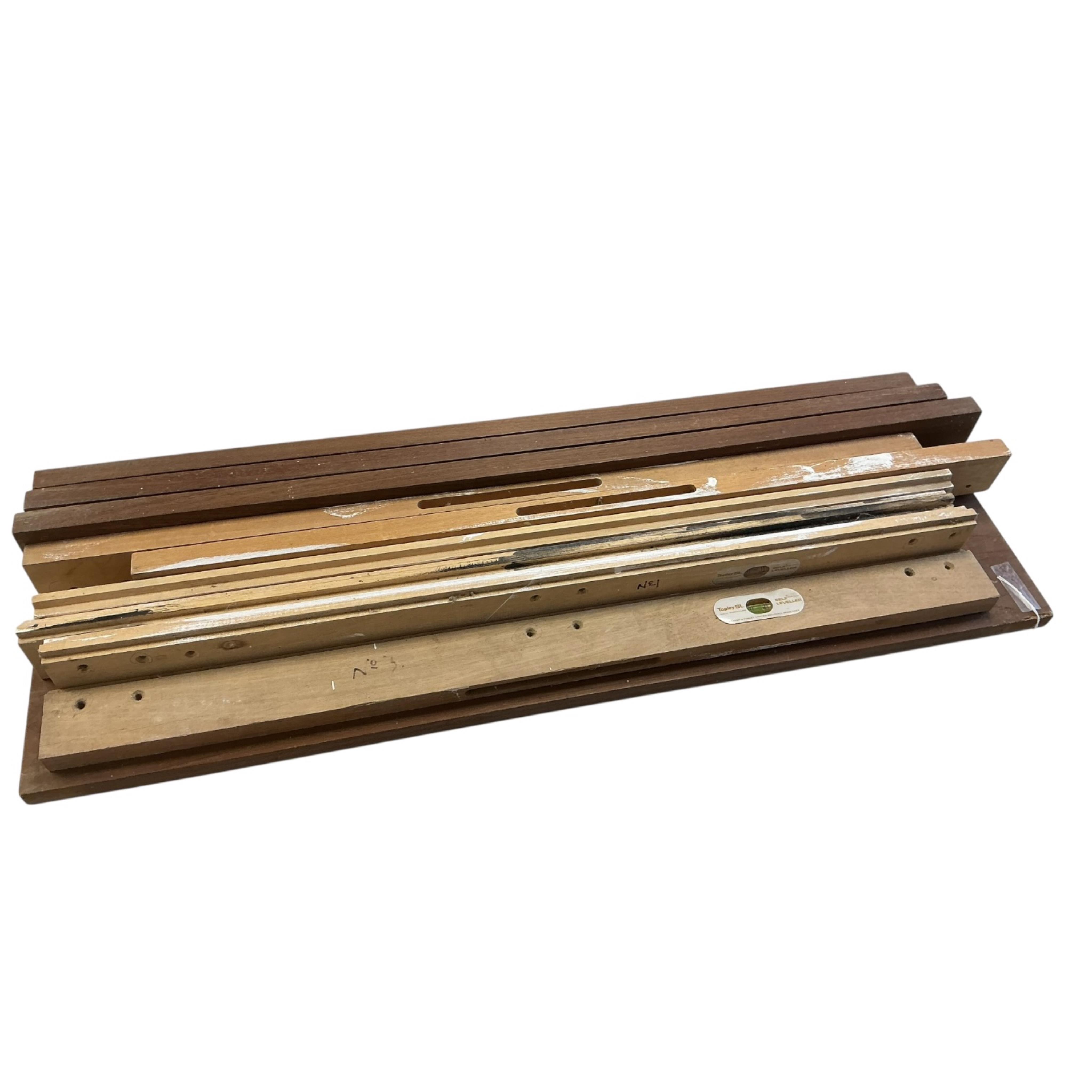 Lot 1437 , Three mid century Tapley self leveller wall shelves, 81cm wide