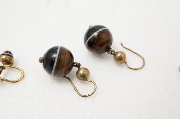 Lot 162 , Three pairs of agate earrings, late 19th century