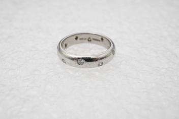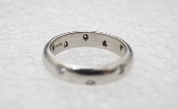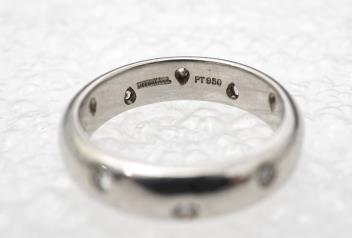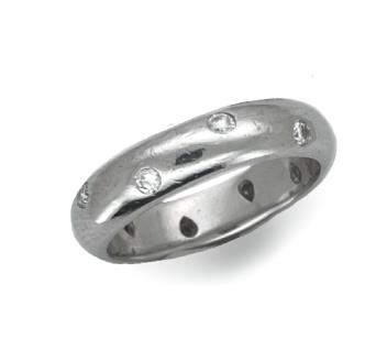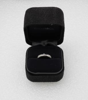 Tiffany & Co., a platinum and diamond ring, the polished platinum band rub over-set with brilliant-cut diamonds totalling approximately 0.30 carats, size J1/2, signed Tiffany & Co., British import hallmarks, sponsor's mark T&Co., gross weight approximately 7 grams, case stamped Tiffany & Co.