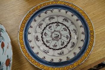 Lot 391 , Two 18th century English delftware plates or dishes and two pearlware dishes, together with a Spode jug