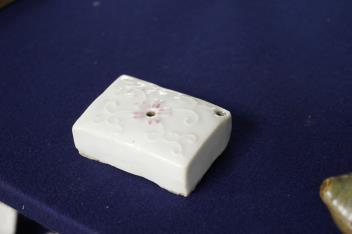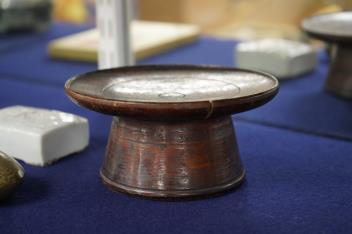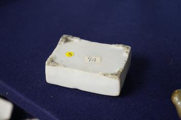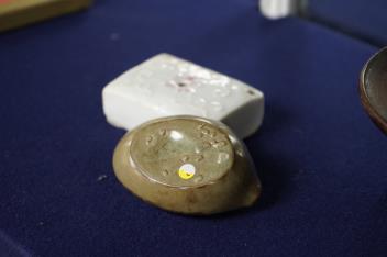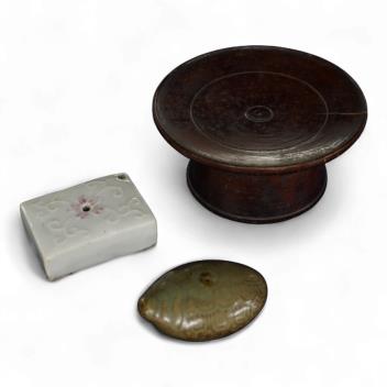Lot 529 , Two 19th century Korean ceramic water droppers and a Korean turned wood cup stand, oval water dropper 8cm long