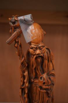 Lot 1257 , Two Chinese carved boxwood figures, one of Shao Lao, the other of Guan Yin, both on stands, on stands. tallest 26cm