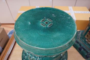 Lot 401 , Two Chinese ceramic turquoise glazed garden seats, largest 41cm high. Condition - fair