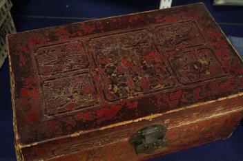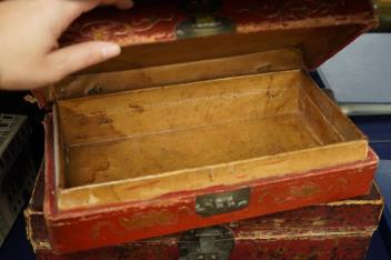 Lot 2523 , Two Chinese leather boxes, largest 39cm wide
