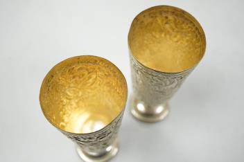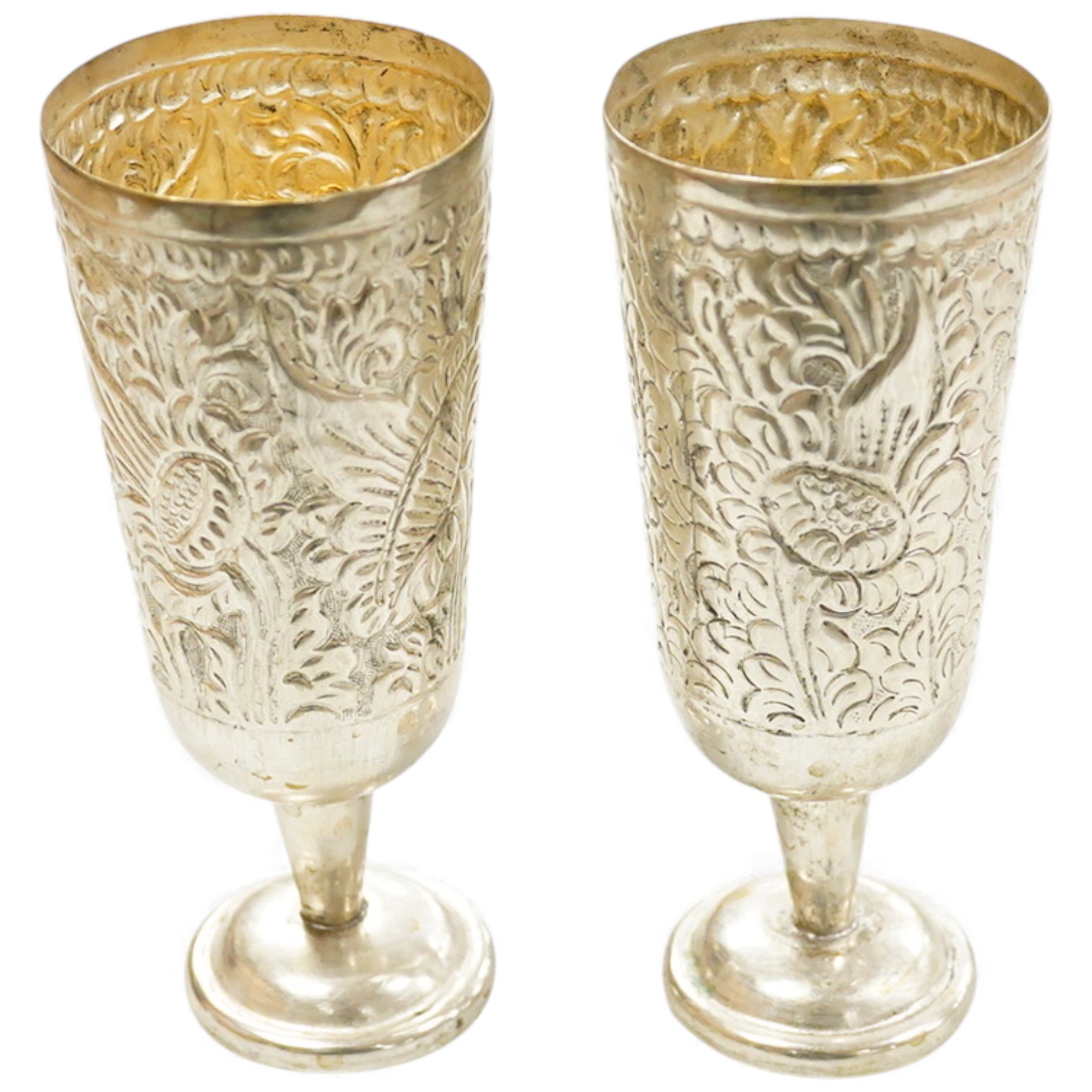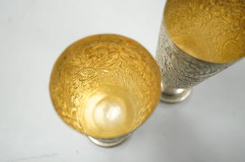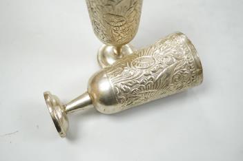 Lot 1836 , Two Indian repousse white metal goblets, unmarked, 15.1cm.