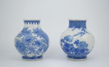 Lot 2 , Two Japanese Mino ware blue and white vases, by Kato Gosuke IV (active c.1863-1898)