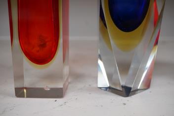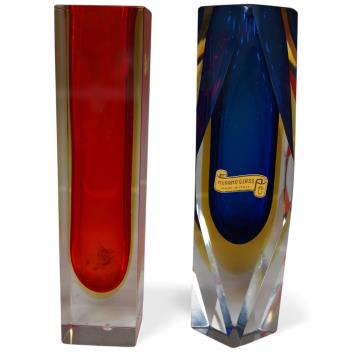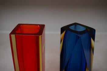Lot 1321 , Two Murano Sommerso tri-colour vases, one with signature and date 29.8.88 to the base, each with labels, 20cm high