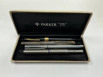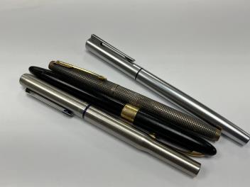 Lot 35 , Two Parker fountain pens including sterling silver, a Sheaffer's fountain pen with 14k nib and a Waterman fountain pen.