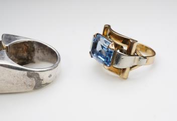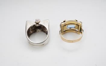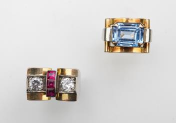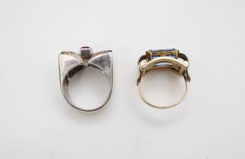 Lot 307 , Two Retro synthetic stone and paste cocktail rings, 1940s