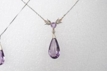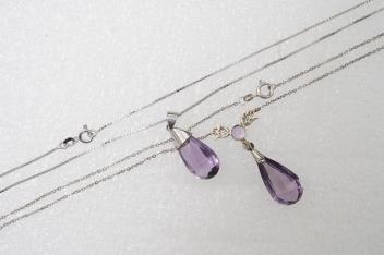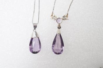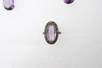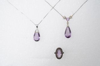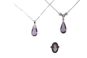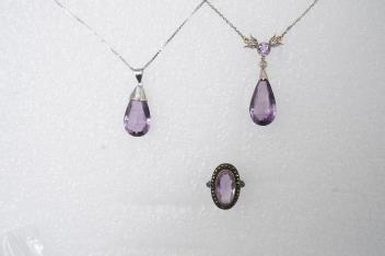Lot 141 , Two amethyst pendants and an amethyst and marcasite ring